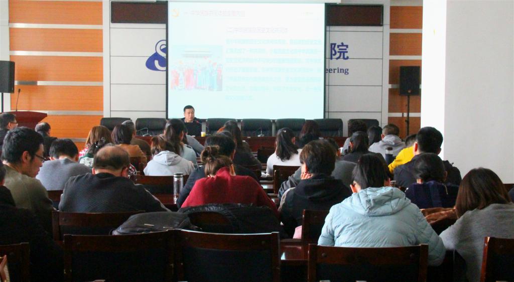 11月11日下午,党委副书记、校长任慧平在逸夫楼D区F302会议室作“铸牢中华民族共同体意识——实现中华民族伟大复兴”专题党课,党委组织部(统战部、党校)、党委宣传部(新闻中心)、工会、团委、人事处、信息工程学院、艺术与设计学院、体育教学部(足球学院)等部门党员聆听党课。