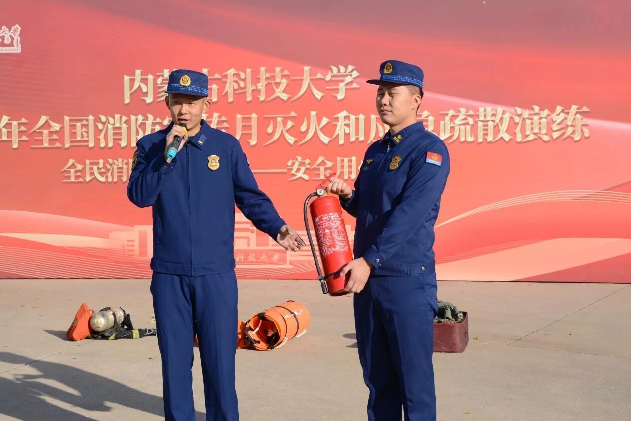 11月9日,我校联合昆都仑区消防救援大队组织开展2025年全国消防宣传月灭火与应急疏散演练活动,学校分管安全工作领导,宣传部、学生工作部、保卫工作部、后勤与基本建设处有关负责人,20余名消防指战员、4600余名师生参加本次活动。