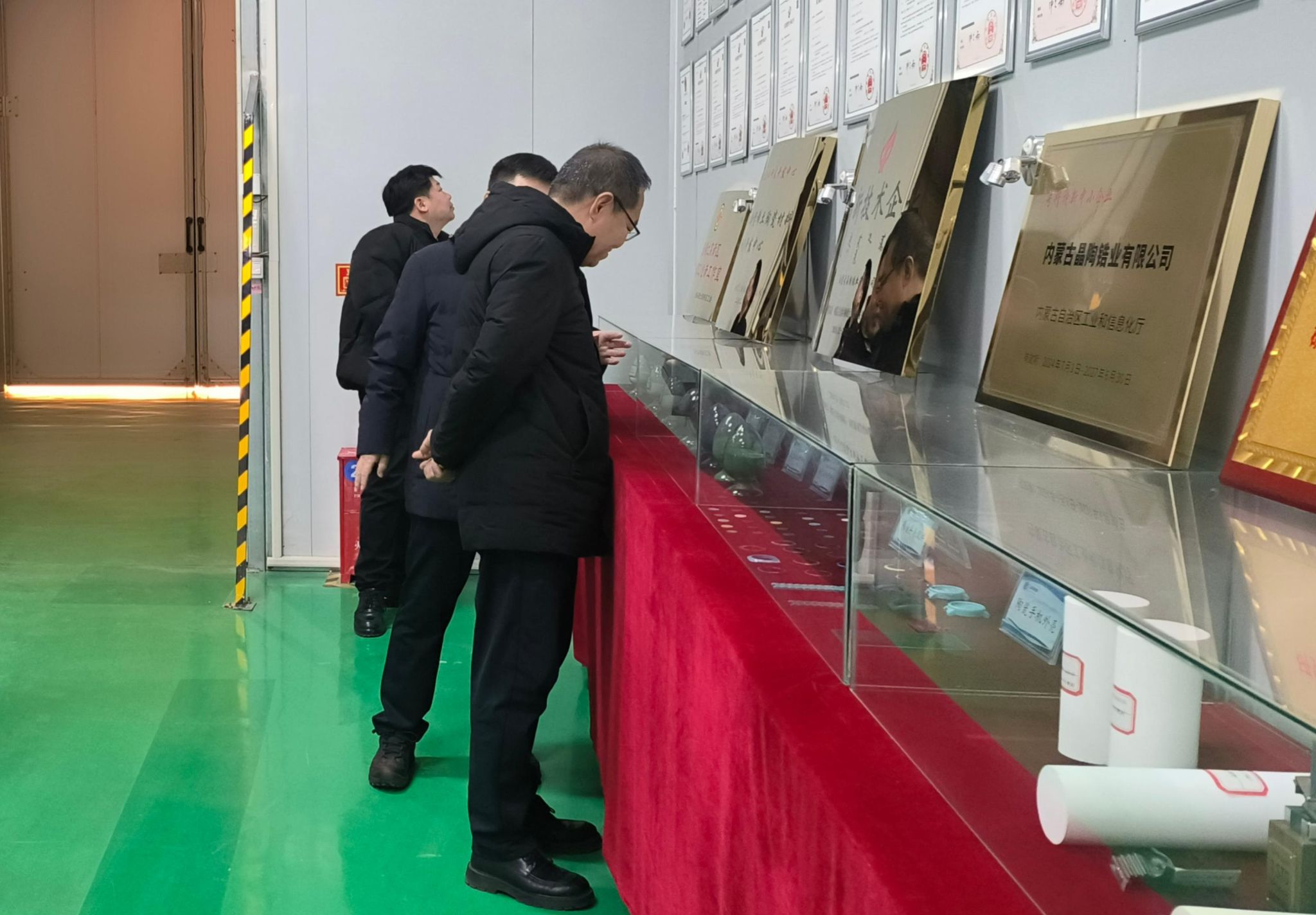 在内蒙古晶陶锆业有限公司,总经理王思凯陪同呼和一行实地参观了企业的产品生产线,详细介绍了企业的核心技术、工艺流程、产品市场及未来发展规划,双方就产业人才需求、技术研发合作等事项进行了交流。