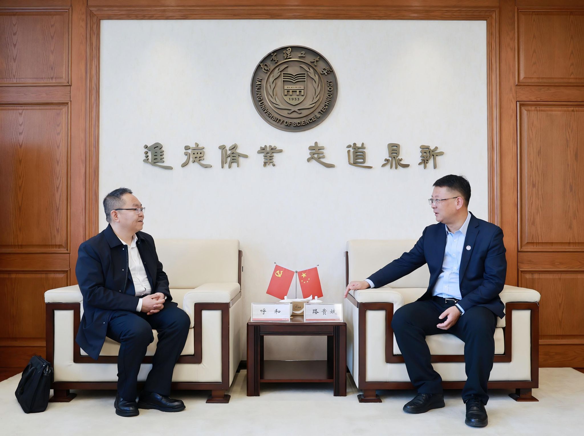 路贵斌对呼和一行的到访表示欢迎,他详细介绍了学校的发展情况。路贵斌表示,南京理工大学愿与内蒙古科技大学加强交流合作,在学科建设、人才培养、科学研究等方面互学互鉴、共同提升。双方就人事人才工作、研究生培养、国内合作发展等方面进行了深入交流。