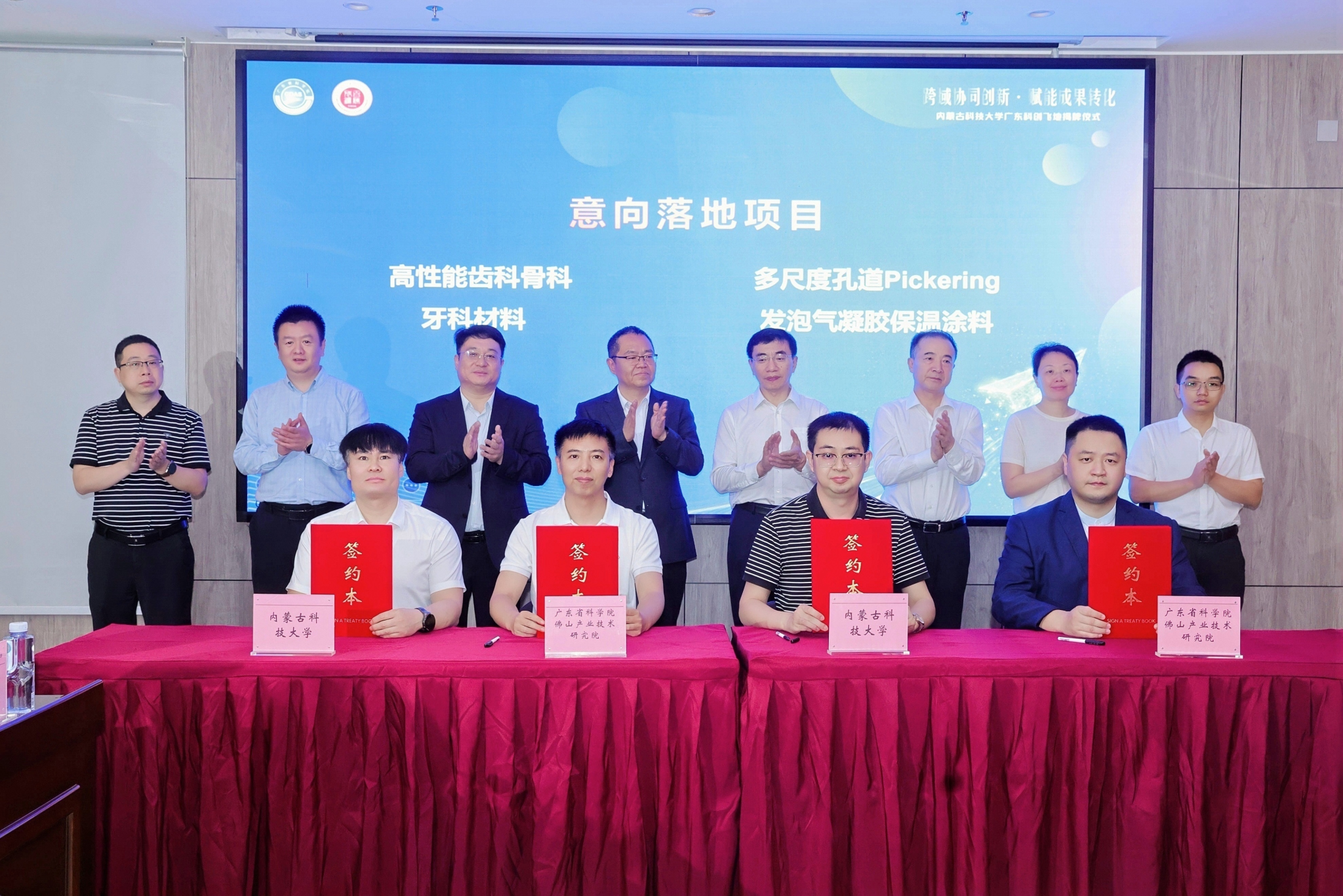 在揭牌仪式现场,我校与佛山产研院签署了科创飞地合作实施协议,夯实平台长效运行机制。6个涵盖牙科骨科材料、特种陶瓷、生物基材料等领域的科创项目完成意向落地签约。同时,举行内蒙古自治区现代能源产业知识产权运营中心与广东省科技图书馆签署合作协议、科创飞地导师聘任仪式等活动,全方位夯实合作基础。