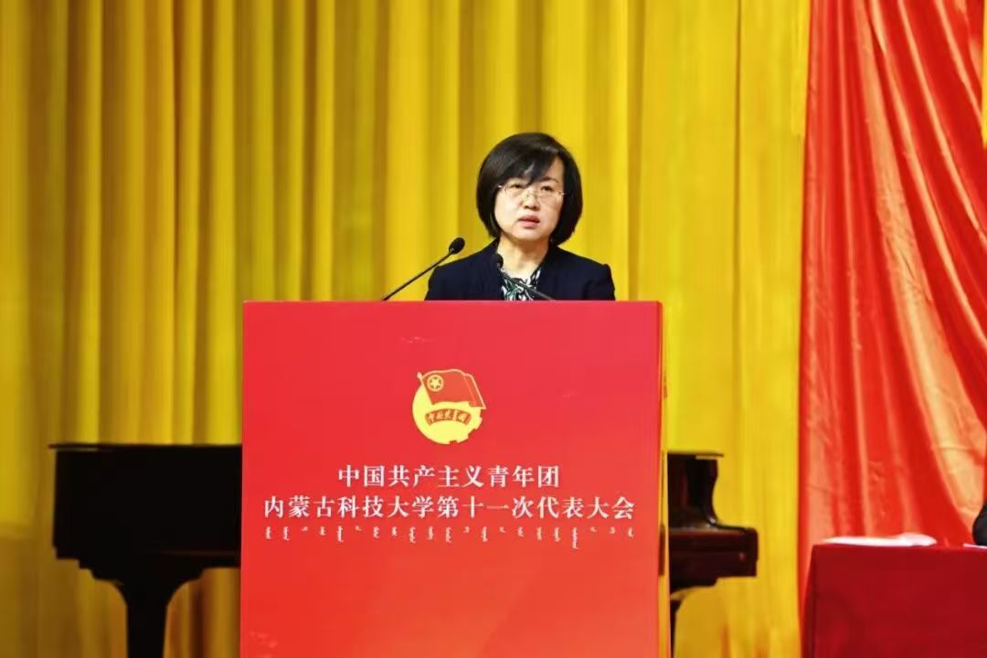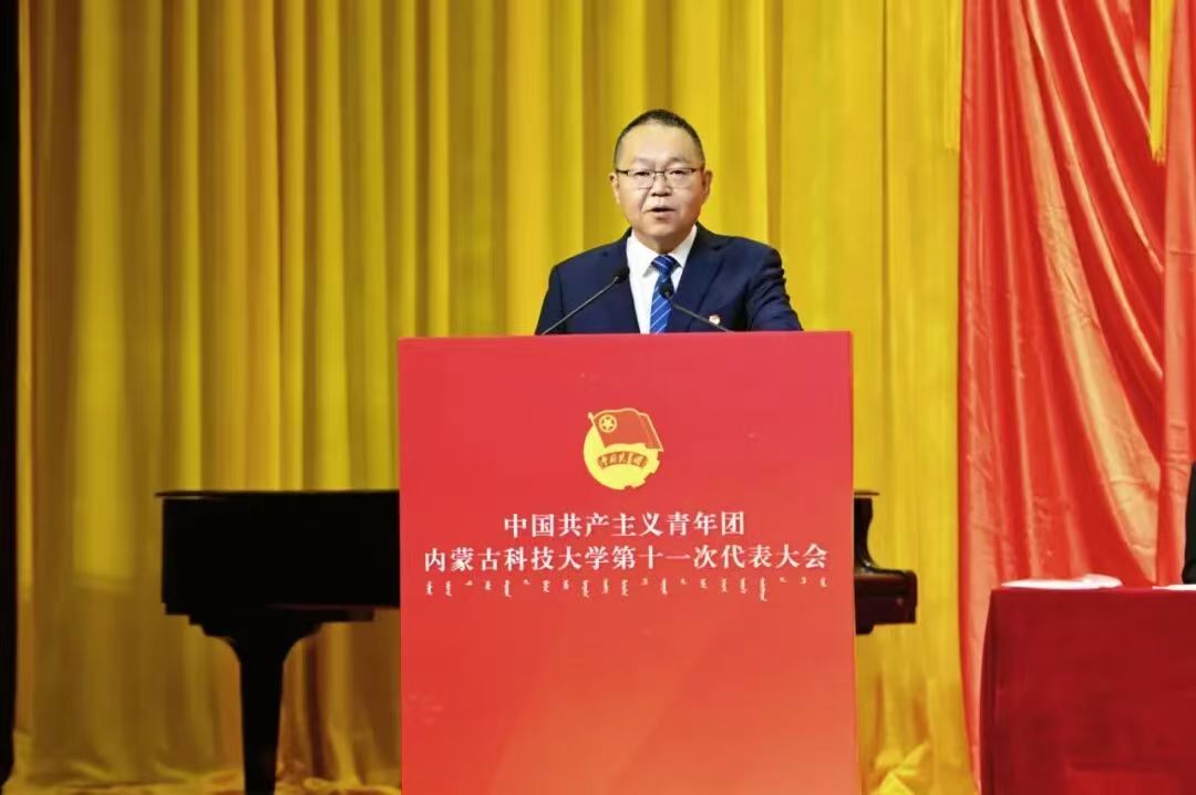 学校团委负责人代表共青团内蒙古科技大学第十届委员会作了题为《青春建功“十五五”凝心聚力启新程——奋力谱写内科大共青团事业高质量发展新篇章》的工作报告。