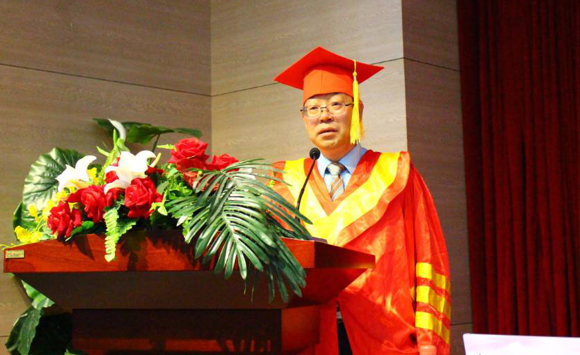 毕业典礼在激昂的国歌声中拉开序幕。朱海珅在典礼中致辞,他对顺利完成学业、即将踏上崭新征途的全院毕业生表示衷心的祝贺,并向毕业生家长与老师表示深深的敬意。