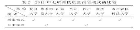鉴于社会各界的批评与质疑,教育部于2012年对《质量报告》的主要内容进行了统一规定。根据要求,2011年质量报告模式情况有相应改变,如表2所示。