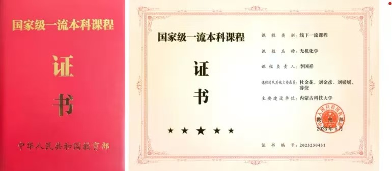 无机化学课程获批国家级一流本科课程